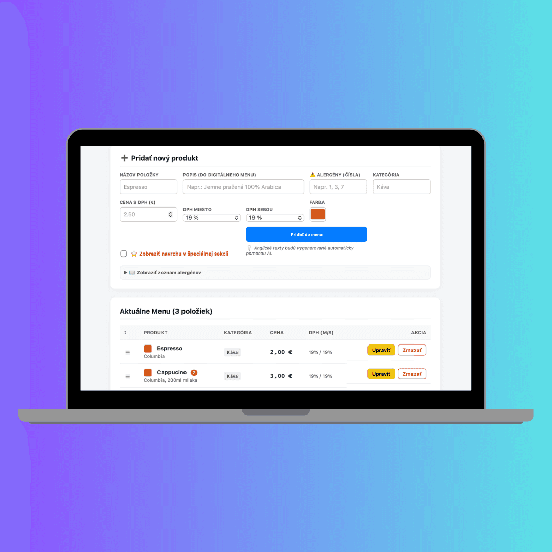 Meníte cenu kávy alebo sezónnu ponuku? Urobte to v manažérovi za 10 sekúnd a zmeny sú viditeľné okamžite.